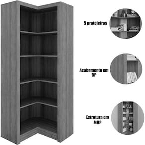 Característica da Estante Armário de Canto Aberto p/ Escritório 5 Prateleiras: