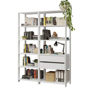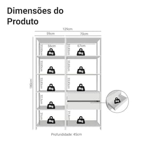 Com prateleiras bem distribuídas e duas gavetas espaçosas, o conjunto oferece espaço para livros, pastas, documentos, caixas organizadoras e itens decorativos. É perfeito para deixar tudo visível e acessível no dia a dia.