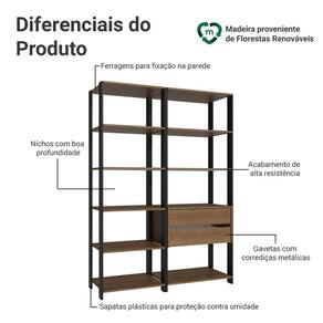 Com prateleiras bem distribuídas e duas gavetas espaçosas, o conjunto oferece espaço para livros, pastas, documentos, caixas organizadoras e itens decorativos. É perfeito para deixar tudo visível e acessível no dia a dia.