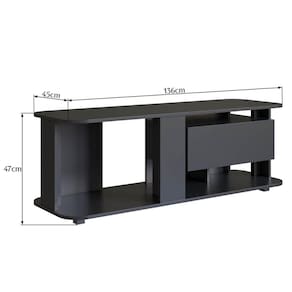 Estante Baixa 136x45x47cm Rack Preto Tv até 55" Gaveta Iluminação Led RGB.