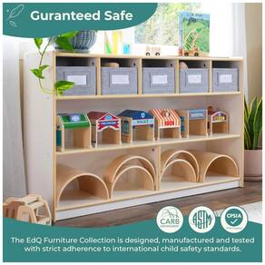 A Guidecraft desenvolveu a linha EdQ para atender às necessidades de organização em ambientes de aprendizagem, priorizando móveis em compensado de bétula, duráveis, com design funcional e escala adequada às crianças. A marca tem longa trajetória em mobiliário infantil e brinquedos educativos, com foco em segurança, durabilidade e incentivo à autonomia das crianças na gestão dos próprios materiais.?