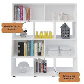 Estante Book - Organizadora De Livros E Decoração Branco Estante Book - Organizadora de Livros e Decoração Branco - A Estante Book é mais do que um móvel; é uma obra de arte que valoriza seu espaço. Com nichos abertos e fechados, ela permite que você exponha seus livros, objetos e lembranças de forma elegante e criativa, e acaba criando um cenário personalizado em sua casa.