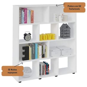 Características Gerais do Produto: - Acabamento: Pintura UV Texturizada - Acompanha Manual: sim - Altura (cm): 109 - Largura (cm): 25 - Material Prateleiras: MDF e MDP - Quantidade De Prateleiras: 3 - Quantidade De Nichos: 10 - Peso (Kg): 20,5 - Matéria-prima: MDF e MDP 15mm - Garantia: 3 meses - Recomendações: Montagem deve ser realizada por um montador de móveis profissional.