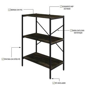 Estante C/03 Prateleiras 84x60x33cm Tub Tueh863 Carvalho Dark - Carvalho Dark /