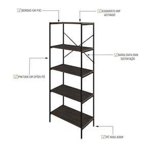 Estante C/05 Prateleiras 152x60x33cm Tub Tueh1565 Nogal - Nogal / Sobre o ProdutoEstante C/05 Prateleiras 152x60x33cm Tub TUEH1565 Branco Chess - Est.PretaDescrição do Produto:A Estante Tub TUEH1565 combina o estilo industrial contemporâneo com funcionalidade. Feita com estrutura tubular de aço com pintura epóxi, garante durabilidade e resistência, enquanto as prateleiras em MDP acetinado com bordas em PVC oferecem maior proteção e fácil manutenção. O design inclui barras chatas em formato X para maior sustentação e estabilidade, além de pés niveladores que asseguram o perfeito ajuste em qualquer superfície. A estante Tub é ideal para organizar e decorar diversos ambientes, como salas, escritórios ou áreas de linha Tub apresenta móveis contemporâneos com um toque de estilo industrial, ideais para sala, home office, cozinha ou área de lazer. Com estrutura em tubos de aço robustos e acabamento em pintura epóxi, cada peça oferece durabilidade e resistência. O MDP Perffect com tecnologia Microban garante proteção contra fungos e bactérias, enquanto as fitas em PVC asseguram um acabamento superior. Essa coleção é a combinação perfeita entre funcionalidade e design moderno para seu Inclusos:1 EstanteDimensões dos Produtos:Estante C/05 Prateleiras 152x60x33cm Tub TUEH1565 Branco Chess - 60 x 33 x 152 cmInformações Logísticas (Comp. X Prof. X Alt.) 162 x 34,5 x 8,5 cm - Peso: 12,9695 KgPeso Total: 12,9695 KgObservações:Não acompanha acessórios decorativos. Imagens meramente ilustrativas.Informações Técnicas / Características:- Cor do Produto: Branco Chess - Cor do Predominante: Branco- Marca: Compace- Modelo: TUEH1565- Linha: Tub- Material: Mdp- Material da Estrutura / Pés: Aço- Acabamento: Perffect Acetinado- Escala de Brilho: Fosco- Fita de Borda: Pvc - Possui Prateleiras: 5- Peso Máximo por Prateleira: 10kg- Possui Pés: 2- Pés Niveladores: Sim - Acabamento Estrutura: Epóxi-Pó- Formato: Retangular - Suporta Até (kg): 50kg- Comprimento: 60cm- Profundidade: 33cm- Altura: 152cm - Peso Lí.: 12,148Kg- Recomendações de Uso, Manutenção e Limpeza: Para a limpeza, utilize flanela seca ou pano macio levemente umedecido em água. Utilize um pano seco em seguida. Evite com produtos químicos (solventes, thinner, acetona, etc) e não utilize nenhum tipo de esponja de aço.- Necessita de Montagem: Sim / Acompanha Manual de Montagem- Complexidade da Montagem: Média: pode ser montado por mais de uma pessoa e/ou necessite de maior conhecimento para montagem.- Garantia: 6 meses Tipo de Garantia: Garantia do Fabricante | Duração de Garantia: 6 Meses | Montagem: Necessita Montagem | Material: Madeira,Metal | País de Origem: | Comprimento: 60 | Altura: 152 | Largura: 33 | Profundidade: 33 | Tonalidade: Multicolorido | Cor: Multicolorido | Produto: Estante | Marca: Compace | Coleção: Industrial | Requer Baterias: Não | Certificação Externa: | Componentes inclusos: Manual de montagem e kit acessórios | Peso: 12,15 | Preço de tabela: 318.90100000000001 | Fabricante: Compace | do Modelo: TUEH1565 | de Caixas: 1 | de Itens: 1 | da Peça: TUEH1565 | Cômodo indicado: Escritórios | Material da Estrutura: Aço | Quantidade de itens: 1 | Principais Características do Produto 0: Aço | Baterias são necessárias?: false | Palavras-chave de Pesquisa: Não Aplicável | Principais Características do Produto 1: MDP | Principais Características do Produto 2: Pvc | Exige montagem: true | Peso do item: unit=kilograms; | Dimensões do item P x L x A: depth#value=33;width#value=60;depth#unit=centimeters;width#unit=centimeters;height#value=152;height#unit=centimeters Cor: Nogal /