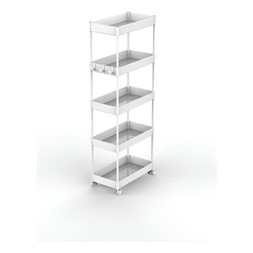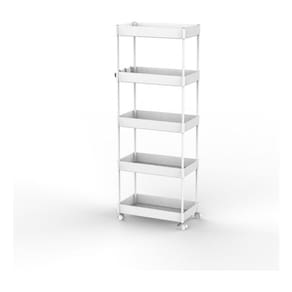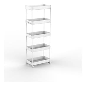 Resumo das caracteristicas e especificacoes: Estante Carrinho Multiuso com Rodas, 5 Niveis, cor Branco, dimensoes 108x40x22cm, peso bruto 3,56 kg, material Plastico, garantia legal, origem importada.