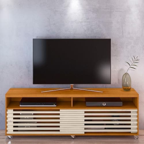 Feito para TVs até 65 polegadas, ele conta com 2 portas deslizantes e seus dois nichos trazem destaque aos seus aparelhos eletrônicos e objetos decorativos!