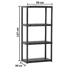 Estante Com 4 Prateleiras - PTR-08 - São Bernardo Preto Descrição:A Estante com 4 prateleiras - PTR08 da São Bernado é indicada para uso em qualquer ambiente de sua casa, como quarto, dispensa, lavanderia, garagem, escritório, cozinha, sala e banheiro. Fácil de montar.Características Principais:Marca: São BernardoCor: PretoEspecificações:Material: plásticoMedidas montada LxAxP : 70,8 x 137,3 x 37,9 cm4 Prateleiras