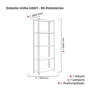 Uma estante com estrutura de aço é uma opção moderna e durável para organizar seus pertences. O aço confere resistência e estabilidade, tornando-a ideal para armazenar livros, objetos decorativos, materiais de escritório e muito mais. Além disso, a estética do aço pode dar um toque contemporâneo ao ambiente. A versatilidade desse material permite que a estante se encaixe em diversos estilos de decoração, do industrial ao minimalista. Acabamento da Prateleira: Pintura Complexidade da Montagem: Baixa: pode ser montado por uma pessoa sozinha Cor: Lilás Cor do Produto: Lilas Cor Interna: Lilas Escala de Brilho: Semi-Fosco Escala de Brilho da Prateleira: Semi-Fosco Itens Inclusos: uma estante Manual de Montagem e Instalação: https://product-hub-prd.madeiramadeira.com.br/901817/documents/a9cee298-2de8-429e-afbb-1feea3eddebe457Estante2020Linha20Light.pdf Material da Prateleira: Aço Material dos Pés: Polipropileno Material Principal: Aço Necessita Montagem: Sim Origem do Produto: Nacional Peso: 7,7291 kg Peso Máximo por Prateleira: 15 kg Possui Espelho: Não Possui Possui iluminação: Não Possui Pés: 04 Possui Portas: Não Possui Prateleiras: 05 Possui Rodízio: Não Recomendações de Uso, Manutenção e Limpeza: Limpeza deve ser feita com um pano levemente umedecido e um pano seco. Sapatas Niveladoras: Não Sistema de Montagem: Parafuso Suporta Até (kg): 15 kg