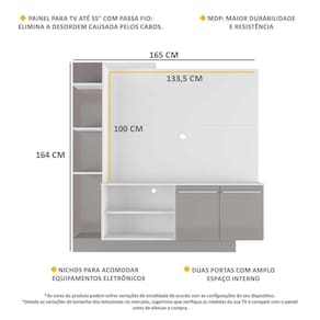 Não tem nada melhor do que um ambiente bonito e organizado para receber as visitas, não é mesmo? A Estante com Painel TV 55" e 2 portas França Multimóveis vai deixar sua sala completa, enriquecendo ainda mais a decoração. Produzida em MDP, que garante maior durabilidade, resistência e facilidade na limpeza, possui painel para TV de até 55 (suporta até 26 Kg) com espaçamento para a passagem dos fios, que deixa o visual mais clean e os cabos organizados. Além das prateleiras que podem ser utilizadas para artigos decorativos, possui nichos para acomodar os equipamentos eletrônicos e 2 portas com um amplo espaço interno para manter seus pertences organizados. A TV pode ser fixada no painel com o auxílio de um suporte (vendido separadamente), porém, neste caso, para maior segurança, sugerimos que a estante seja fixada na parede.