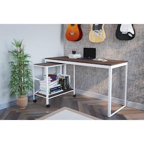 Quando não está em uso, fica debaixo da mesa ou escrivaninha, com melhor aproveitamento de espaços, pode ser utilizado como estante, carrinho, escrivaninha, aparador, rack, ou conforme sua necessidade em cada ambiente. Produto Montado: Sim Acabamento da Prateleira: BP Ambiente Principal: Escritório codigo_ean: 7909903003381 Complexidade da Montagem: Baixa: pode ser montado por uma pessoa sozinha Cor: Branco/Nogal Cor do Produto: Branco/Nogal Cor Interna: Branco Escala de Brilho: Semi-Brilho Escala de Brilho da Prateleira: Fosco Itens Inclusos: 1 Estante, 1 Manual de instrução e 1 Kit componentes. Manual de Montagem e Instalação: https://product-hub-prd.madeiramadeira.com.br/712117/documents/2b68086b-a495-44b6-8b9e-faad35504b2a885723estantecomrodzio2p.pdf Material da Prateleira: MDP Material Principal: Aço Necessita Montagem: Sim Origem do Produto: Nacional Peso: 5 kg Peso Máximo por Prateleira: 8 kg Possui Espelho: Não Possui iluminação: Não Possui Pés: Não Possui Portas: Não Possui Prateleiras: Sim Recomendações de Uso, Manutenção e Limpeza: Não utilizar abrasivos na limpeza. Evitar batidas e contato com objetos cortantes. Utilizar pano umedecido com água seguido de pano seco. Sistema de Montagem: Parafusos Suporta Até (kg): 16 kg Marca: Completa Casa
