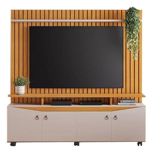 Estante Conceito Home para TV até 65 Polegadas 4 Portas Ripado JCM Cinamomo Off White Procurando um móvel que combine elegância e funcionalidade para a sua sala de estar? A Estante Conceito Home para TV até 65 Polegadas 4 Portas Ripado JCM Cinamomo Off White é a escolha perfeita para você! Com 4 portas e um acabamento ripado, esta estante é o complemento ideal para a decoração do seu lar. A Estante Conceito é uma peça que impressiona tanto pelo seu visual moderno quanto pela sua praticidade. É perfeita para organizar e exibir seus objetos favoritos, enquanto mantém a sua sala de estar sempre em ordem. Venha para a Estrela Móveis e adquira este e outros móveis com a garantia de qualidade e um atendimento personalizado que você merece. MEDIDAS Altura 191 cm Largura 164 cm Profundidade 43 cm CARACTERÍSTICAS Fabricante JCM Modelo Estante Conceito Garantia 3 meses Tipo de produto Estante Home Ambiente Sala de Estar Estrutura MDP/MDF Quantidade de Portas 04 Tipo de Porta Bater Ideal para TVs de até 65 Polegadas Tipo de Puxador Couro e Argola Possui Rodízios Sim Necessita Montagem Sim Acompanha Manual de Instalação Sim INFORMAÇÕES IMPORTANTES Objetos decorativos que porventura apareçam na foto, não acompanham o produto. Não nos responsabilizamos pela montagem/instalação dos produtos. Montagens, desmontagens e instalações são responsabilidades do cliente. Indicamos que contrate uma empresa de montagem ou um montador de sua confiança. Além disso, favor verificar se os pés e acessórios estão dentro do forro inferior do produto. Em suma, todas as informações divulgadas sobre o produto são de responsabilidade do Fabricante. As cores do produto podem variar de acordo com o seu monitor, a iluminação do ambiente em que você está e até mesmo a sua percepção visual. Além da cor, pequenos detalhes e acabamentos podem não ficar evidentes na foto, por isso as imagens são meramente ilustrativas.