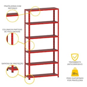 ESTANTE DE AÇO 195X92X30 6 PRAT. C/ REFORÇO PANDIN - VERMELHO
