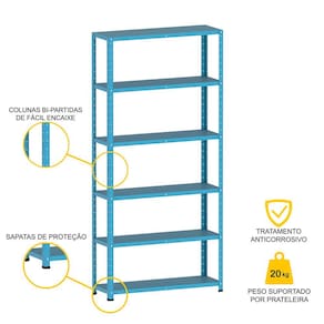 ESTANTE DE AÇO 195X92X30 6 PRAT. PANDIN - AZUL DALÍ
