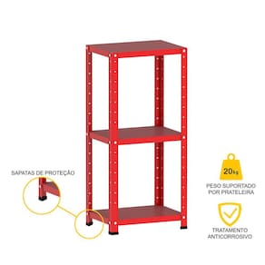 ESTANTE DE AÇO 90X40X30 3 PRAT. PANDIN - VERMELHO
