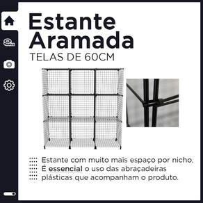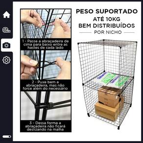 CARACTERÍSTICAS: - Cor: Preto - Material: Aço - Tela aramada com malha de espaços de 5 cm - Medidas do Nicho: 60 x 60 x 60 cm - Distância do Chão: 5cm - Suporta aproximadamente 10kg bem distribuídos por nicho