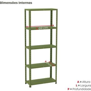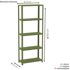 Estante de Estrutura Metálica com 5 prateleiras 175cm(A)92Acm(L)30cm(P) Sem Reforço Verde Miró -