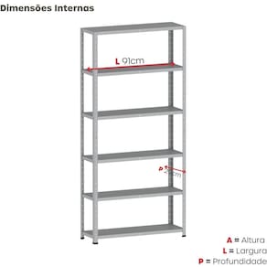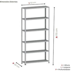 - 1 Estante de Estrutura Metálica com 5 prateleiras 175cm(A) Sem Reforço