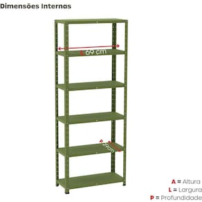 Estante de Estrutura Metálica com 6 prateleiras 175cm(A) Com Reforço Verde Miró -