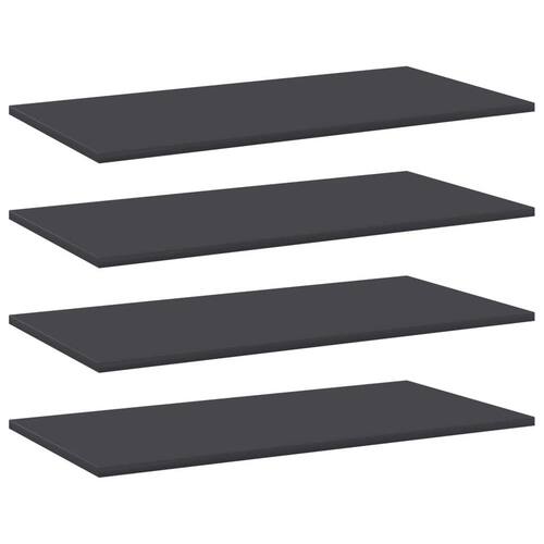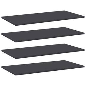 - Número de itens: 4- - Cor: cinza- - Forma: retangular- - Material: madeira projetada- - Interior/externo: somente interior- - Capa incluída: Não- - Sala: Biblioteca- - Capacidade: 4 peças- - Montagem incluída: Tudo incluído na montagem- - Dimensões: 31,5 x 31,5 x 0,6 pol. (L x C x A) - - Altura da superfície: 0,6 pol- - Peso: 31,09 libras- - Escada: Não- - Marca: vidaXL- - A entrega contém: 4 x placa de estante- - Montagem necessária: Não- - SKU: 805334- - EAN: 8720286245873-