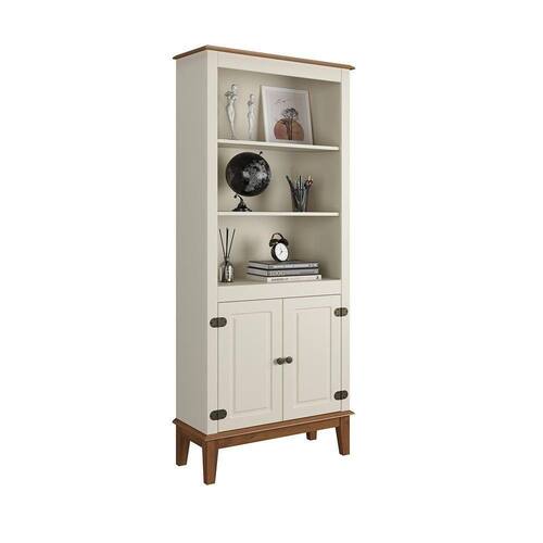 Estante De Madeira Maciça 2 Portas Off White - Branco