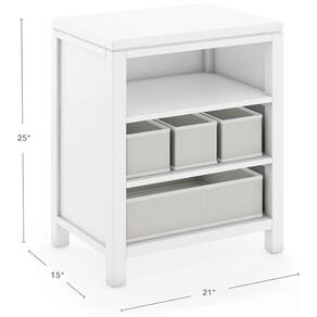 A estante de armazenamento aberta Martha Stewart é projetada para organizar materiais de artesanato e livros em ambientes infantis, como quartos, salas de aula e áreas de estudo. Fabricada em madeira maciça de pinho combinada com madeira reconstituída, apresenta acabamento branco linho fosco, resistente a riscos e de fácil limpeza.