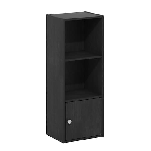 Furinno Estante Luder Shelf com armário de armazenamento de 1 porta, madeira preta