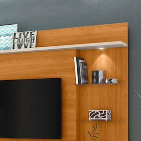 Estante De Tv 55 Pol 182cm Sala De Estar Elaris Cinamomo/off White M20 - D'rossi Com um design moderno e minimalista, a Estante de TV Elaris no tom Cinamomo e Off White de 182cm é a escolha ideal para quem busca elegância, funcionalidade e qualidade em um só móvel. Desenvolvida para TVs de até 55 polegadas, ela une sofisticação a soluções práticas que valorizam e organizam sua sala de estar. A estrutura robusta é fabricada em MDP de 15, 25 e 40mm, com madeira proveniente de reflorestamento, garantindo resistência ao empenamento e maior durabilidade. O acabamento é realçado pela pintura DIP, que simula pedra ou madeira com profundidade, brilho e realismo incomparáveis. Além disso, conta com pintura UV, uma tecnologia sustentável, resistente e livre de substâncias tóxicas. O painel conta com prateleiras de vidro de 5mm, que agregam leveza e requinte, enquanto a iluminação em LED embutida acima das prateleiras cria um efeito visual sofisticado, destacando objetos decorativos com charme e delicadeza. A porta articulada, equipada com dobradiças metálicas, oferece acesso prático e seguro ao compartimento interno, sendo ideal para armazenar eletrônicos e outros itens. Esse recurso ainda contribui para manter o ambiente sempre bem organizado. Dimensões do Produto: Altura: 181 cm Largura: 182 cm Profundidade: 39 cm Peso: 68 kg Características do Produto: Material da Estrutura: MDP Espessuras das Chapas: 15mm/25mm/40mm Peso Suportado: 120 Kg Distribuídos Acabamento: Pintura UV Escala de Brilho: Fosco/Brilho Suporta TV de até: 55 Polegadas Possui Prateleiras: Sim Quantidade de Prateleiras: 2 Prateleiras em Vidro 5mm Possui Portas: Sim Quantidade de Portas: 1 Porta Tipo de Porta: Convencional Dobradiças Metálicas: Sim Possui Vidro: Sim Possui Luminária de LED: Sim Possui Nichos: Não possui Possui Gavetas: Não possui Possui Puxador: Não possui Possui Espelho: Não possui Possui Pés: Não possui Diferenciais: Design sofisticado; Porta com dobradiça metálica; Luminárias de Led; Prateleira de vídro. Sistema de montagem: Cavilhas/Parafusos/Minifix Manual de Montagem: Sim Complexidade da Montagem: Alta Montagem: Recomendamos que seja feita por um profissional Garantia: 90 dias contra defeito de fabricação Instruções de Limpeza: Utilizar um pano limpo e levemente úmido Quantidade de Volumes 2 Caixas Medida das Embalagens Caixa 1: 138,8x47x8cm; Caixa 2: 183,8x40x1,5cm Entrega: É feita somente até o térreo ou portaria. Confira sempre as medidas das embalagens para assegurar que o produto passe por portas e escadas do local.