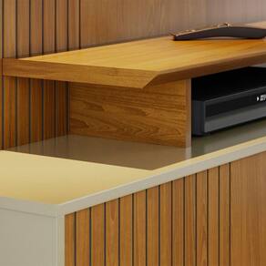 Estante De Tv 65 Pol 160cm Com Pés Para Sala Quirel Cumaru/opala M20 - D'rossi Modernize sua sala de estar com a Estante de TV Quirel 160cm na cor Cumaru com Opala, uma solução sofisticada e funcional para acomodar sua TV de até 65 polegadas. Com design contemporâneo e detalhes refinados, ela combina perfeitamente com ambientes modernos que priorizam estilo e organização. A porta deslizante com detalhe frisado em MDF de baixo relevo traz exclusividade ao móvel, enquanto o puxador dourado pontual adiciona um toque sutil de sofisticação. Produzida com painéis em MDP de 15mm e 25mm, a estrutura é firme, durável e resistente ao uso diário. O tampo e a prateleira superior com bordas chanfradas reforçam o cuidado com o acabamento e dão charme ao conjunto. Com prateleiras funcionais para decoração e organização de objetos, e pés que garantem estabilidade, este painel é ideal para transformar seu espaço de entretenimento em um ambiente acolhedor, elegante e bem planejado. Dimensões do Produto: Altura: 188 cm Largura: 160 cm Profundidade: 39 cm Peso: 65 kg Características do Produto: Material da Estrutura: MDP/MDF Espessuras das Chapas: 15mm/25mm Peso Suportado: 164 Kg Distribuídos Acabamento: Pintura UV Escala de Brilho: Brilho/Fosco Suporta TV de até: 65 Polegadas Possui Prateleiras: Sim Quantidade de Prateleiras: 2 Prateleiras Possui Portas: Sim Quantidade de Portas: 1 Porta Tipo de Portas: Deslizante Possui Tampo: Sim Espessura do Tampo: 25mm Possui Nichos: Sim Quantidade de Nichos: 3 Nichos Possui Gavetas: Não possui Possui Puxador: Sim Material dos Puxadores: Poliestireno Possui Espelho: Não possui Possui Pés: Sim Material dos Pés: Poliestireno Possui Luminária de LED: Não possui Diferenciais: Porta deslizante; Borda frontal chanfrada;Detalhes frisados. Sistema de montagem: Cavilhas/Parafusos/Minifix Manual de Montagem: Sim Complexidade da Montagem: Alta Montagem: Recomendamos que seja feita por um profissional Garantia: 90 dias contra defeito de fabricação Instruções de Limpeza: Utilizar um pano limpo e levemente úmido Quantidade de Volumes 3 Caixas Medida das Embalagens Caixa 1: 138x47x6,5cm; Caixa 2: 162x48,7x12,5cm; Caixa 3: 51,5x10x4cm Entrega: É feita somente até o térreo ou portaria. Confira sempre as medidas das embalagens para assegurar que o produto passe por portas e escadas do local.