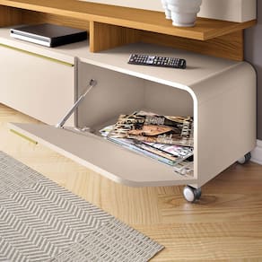 Diferenciais: Design moderno; Detalhe ripado; Pistão a gás; Rodízios cromados 50mm; Tampo e prateleira de 25mm.