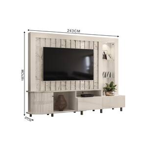 Estante De Tv 70 Pol 243cm Ripado Sala De Estar Nivora Calacata/off White M20 - D'rossi A Estante de TV Nivora na Calacata/Off White é a opção perfeita para quem deseja unir design contemporâneo, organização inteligente e acabamento sofisticado na Sala de Estar. Com largura de 243cm, o móvel suporta TVs de até 70 polegadas, transformando o ambiente em um espaço elegante e funcional. Produzida com chapas em MDP de 15mm e 25mm, oferece excelente durabilidade e resistência ao longo do tempo. O destaque fica por conta da porta deslizante ível em MDF, com design curvo exclusivo, que proporciona um visual diferenciado e otimiza o uso do espaço. A iluminação LED integrada valoriza objetos decorativos e cria uma atmosfera aconchegante. As prateleiras de vidro de 5mm adicionam leveza e requinte, enquanto o nicho central é ideal para aparelhos eletrônicos. Para completar, o móvel conta com duas gavetas com corrediças telescópicas, que garantem organização prática e eficiente. Os pés em poliestireno garantem estabilidade e ainda contribuem para a praticidade na hora da limpeza. O puxador em tom cromado, por sua vez, acrescenta um toque de sofisticação ao design. Dimensões do Produto: Altura: 187 cm Largura: 243 cm Profundidade: 47 cm Peso: 98 kg Características do Produto: Material da Estrutura: MDP e MDF Espessuras das Chapas: 15mm/25mm Peso Suportado: 43 Kg Distribuídos Acabamento: Pintura UV Escala de Brilho: Brilho/Fosco Suporta TV de até: 70 Polegadas Possui Prateleiras: Sim Quantidade de Prateleiras: 2 Prateleiras Material das Prateleiras: Vidro 5mm Possui Portas: Sim Quantidade de Portas: 1 Porta Material da Porta: MDF Tipo Porta: Deslizante Possui Nichos: Sim Quantidade de Nichos: 1 Nicho Possui Gavetas: Sim Quantidade de Gavetas: 2 Gavetas Material das Corrediças: Telescópicas Possui Puxador: Sim Quantidade de Puxador: 1 Puxador Material do Puxador: Poliestireno cromado Possui Pés: Sim Material dos Pés: Poliestireno Possui Luminária de LED: Sim Possui Espelho: Não possui Possui Rodízios: Não possui Diferenciais: Design moderno; Detalhes curvos no tampo e na base; Porta deslizante ível, Painel com detalhe ripado. Sistema de montagem: Cavilhas/Parafusos/Minifix Manual de Montagem: Sim Complexidade da Montagem: Alta Montagem: Recomendamos que seja feita por um Garantia: 90 dias contra de fabricação Instruções de Limpeza: Utilizar um pano limpo e levemente úmido Quantidade de Volumes 3 Caixas Medida das Embalagens Caixa 1: 140x49,5x13,7cm; Caixa 2: 183,5x37x10cm; Caixa 3: 240,7x29,5x8,2cm : É feita somente até o térreo ou portaria. Confira sempre as medidas das embalagens para assegurar que o produto passe por portas e escadas do .