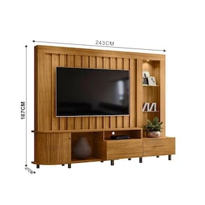Estante De Tv 70 Pol 243cm Ripado Sala De Estar Nivora Cumaru M20 - D'rossi A Estante de TV Nivora na Cumaru é a opção perfeita para quem deseja unir design contemporâneo, organização inteligente e acabamento sofisticado na Sala de Estar. Com largura de 243cm, o móvel suporta TVs de até 70 polegadas, transformando o ambiente em um espaço elegante e funcional. Produzida com chapas em MDP de 15mm e 25mm, oferece excelente durabilidade e resistência ao longo do tempo. O destaque fica por conta da porta deslizante ível em MDF, com design curvo exclusivo, que proporciona um visual diferenciado e otimiza o uso do espaço. A iluminação LED integrada valoriza objetos decorativos e cria uma atmosfera aconchegante. As prateleiras de vidro de 5mm adicionam leveza e requinte, enquanto o nicho central é ideal para aparelhos eletrônicos. Para completar, o móvel conta com duas gavetas com corrediças telescópicas, que garantem organização prática e eficiente. Os pés em poliestireno garantem estabilidade e ainda contribuem para a praticidade na hora da limpeza. O puxador em tom cromado, por sua vez, acrescenta um toque de sofisticação ao design. Dimensões do Produto: Altura: 187 cm Largura: 243 cm Profundidade: 47 cm Peso: 98 kg Características do Produto: Material da Estrutura: MDP e MDF Espessuras das Chapas: 15mm/25mm Peso Suportado: 43 Kg Distribuídos Acabamento: Pintura UV Escala de Brilho: Brilho/Fosco Suporta TV de até: 70 Polegadas Possui Prateleiras: Sim Quantidade de Prateleiras: 2 Prateleiras Material das Prateleiras: Vidro 5mm Possui Portas: Sim Quantidade de Portas: 1 Porta Material da Porta: MDF Tipo Porta: Deslizante Possui Nichos: Sim Quantidade de Nichos: 1 Nicho Possui Gavetas: Sim Quantidade de Gavetas: 2 Gavetas Material das Corrediças: Telescópicas Possui Puxador: Sim Quantidade de Puxador: 1 Puxador Material do Puxador: Poliestireno cromado Possui Pés: Sim Material dos Pés: Poliestireno Possui Luminária de LED: Sim Possui Espelho: Não possui Possui Rodízios: Não possui Diferenciais: Design moderno; Detalhes curvos no tampo e na base; Porta deslizante ível, Painel com detalhe ripado. Sistema de montagem: Cavilhas/Parafusos/Minifix Manual de Montagem: Sim Complexidade da Montagem: Alta Montagem: Recomendamos que seja feita por um Garantia: 90 dias contra de fabricação Instruções de Limpeza: Utilizar um pano limpo e levemente úmido Quantidade de Volumes 3 Caixas Medida das Embalagens Caixa 1: 140x49,5x13,7cm; Caixa 2: 183,5x37x10cm; Caixa 3: 240,7x29,5x8,2cm : É feita somente até o térreo ou portaria. Confira sempre as medidas das embalagens para assegurar que o produto passe por portas e escadas do .