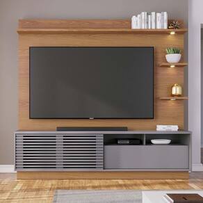 Estante De Tv 70 Polegadas 200cm Com Led Lidia C04 - D'rossi Cor Freijó E Cinza Fosco Com estrutura em MDP de alta qualidade e acabamento em pintura UV, a Estante de TV Lidia é a escolha ideal para quem valoriza espaço, organização e estilo. Seu design moderno com linhas minimalistas acomoda TVs de até 70 e se destaca pelo visual elegante. A parte superior conta com prateleiras iluminadas por spots de LED bivolt, que trazem aconchego e sofisticação ao ambiente. O móvel possui uma porta de correr com detalhe ripado e brises, que reforça seu apelo contemporâneo. Além disso, oferece uma gaveta com corrediças telescópicas, nichos internos e oito pés em PVC, garantindo estabilidade e funcionalidade. Uma peça versátil e cheia de personalidade, perfeita para transformar sua sala com praticidade e bom gosto. O grande diferencial da Estante de TV Lidia está na sua porta deslizante ripada com brises, um detalhe que imprime sofisticação e reforça o estilo contemporâneo da peça. Combinando beleza e funcionalidade, esta estante transforma sua sala de estar em um ambiente elegante e convidativo, perfeito para momentos de lazer e entretenimento. Garanta já a sua! Dimensões do Produto: Altura: 180 cm Largura: 200 cm Profundidade: 40,9 cm Altura dos Pés: 5 cm Peso: 88,6 kg Características do Produto: Material da Estrutura: MDP 15mm e 25mm Acabamento: UV Revestimento: Pintura Escala de Brilho: Fosco Revestimento da Borda: Fitas de borda em papel Possui LED: Spot Led Bi-volt Voltagem: Bivolt Possui Gavetas: Sim Quantidade de Gavetas: 1 Gaveta Tipo de Corrediças: Corrediças telescópicas Possui Prateleiras: Sim Quantidade de Prateleiras: 3 Prateleiras Possui Portas: Sim Quantidade de Portas: 1 Porta Tipo Porta: Deslizante Possui Vidro: Não Possui Puxador: Não Possui Rodízios: Não Possui Pés: Sim Quantidade de Pés: 8 Pés Material dos Pés: Plástico PVC Possui Nichos: Sim Quantidade de Nichos: 2 Nichos Recomendado para TV: Para TVs até 70 Diferenciais: Design moderno; Detalhe Porta brize com ripado artesanal; prateleiras iluminadas com três Spot Led Manual de Montagem: Sim Complexidade da Montagem: Baixo Montagem: Recomendamos que seja feita por um Garantia: 90 dias contra de fabricação Instruções de Limpeza: Utilizar um pano limpo e levemente úmido Quantidade de Volumes 3 Caixas Medida das Embalagens Caixa 1: 11,2 cm x 33,4 cm x 102,5 cm; Caixa 2: 8,4 cm x 41,2 cm x 206,9 cm e Caixa 3: 9,3 cm x 45,6 cm x 206,5 cm : É feita somente até o térreo ou portaria. Não levamos em andares superiores. Confira sempre as medidas das embalagens.