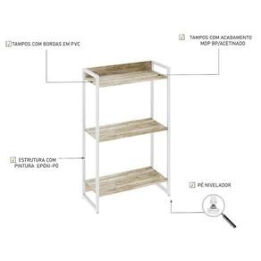 Estante Dynamica 60x30x104cm C/03 Prateleiras Carvalho / Carvalho / Sobre o ProdutoEstante Dynamica 60X30X104cm C/03 Prateleiras Carvalho / Est.BrancaDescrição do Produto:A Estante Dynamica DYES63 é um produto prático e versátil, que pode ser utilizado em diversos ambientes, como quarto e escritório, na sala, cozinha ou seu depó Linha Dynamica reúne design minimalista e praticidade, traços retos e móveis versáteis são as características dessa coleção. As estruturas metálicas possuem pintura Epóxi e sapatas niveladoras e, nos tampos, MDP BP Acetinado com fitas de borda em PVC. Itens Inclusos:1 EstanteDimensões dos Produtos:Estante Dynamica 60X30X104cm C/03 Prateleiras Carvalho / 60 x 30 x 104 cmInformações Logísticas (Comp. X Prof. X Alt.) 106 x 34 x 11 cm - Peso: 9,229 KgPeso Total: 9,229 KgObservações:Não acompanha acessórios decorativos. Imagens meramente ilustrativas.Informações Técnicas / Características:- Cor do Produto: Carvalho / - Marca: Compace- Modelo: DYES63- Linha: Dynamica- Material: Mdp- Material da Estrutura / Pés: Aço- Acabamento: BP Acetinado- Escala de Brilho: Fosco- Fita de Borda: Pvc- Possui Portas: Não - Possui Prateleiras: 3- Peso Máximo por Prateleira: 07 kg- Possui Pés: 2- Pés Niveladores: Sim - Acabamento Estrutura: Epóxi-Pó Texturizado - Suporta Até (kg): 21 kg- Comprimento: 60cm- Profundidade: 30cm- Altura: 104cm - Peso Lí.: 8,595Kg- Recomendações de Uso, Manutenção e Limpeza: Para a limpeza, utilize flanela seca ou pano macio levemente umedecido em água. Utilize um pano seco em seguida. Evite com produtos químicos (solventes, thinner, acetona, etc) e não utilize nenhum tipo de esponja de aço.- Necessita de Montagem: Sim / Acompanha Manual de Montagem- Complexidade da Montagem: Média: pode ser montado por mais de uma pessoa e/ou necessite de maior conhecimento para montagem.- Garantia: 6 meses Material: Mdp | Acabamento: BP Acetinado | Escala de Brilho: Fosco | Fita de Borda: Pvc | Material da Estrutura: Aço | Acabamento da Estrutura: Epóxi-Pó Texturizado | Produto: Estante | Cômodo indicado: Escritórios | Cor: Multicolorido | Tonalidade: Multicolorido | Quantidade de itens: 1 | Principais Características do Produto 0: Aço | do modelo: DYES63 | Certificação de teste externa: Não aplicável | Baterias são necessárias?: false | Palavras-chave de Pesquisa: Não Aplicável | Principais Características do Produto 1: MDP | da peça: DYES63 | de caixas: 1 | Principais Características do Produto 2: Pvc | Componentes incluídos: Manual de montagem e kit acessórios | Exige montagem: true | Fabricante: Compace | Peso do item: unit=kilograms;value=8.3800000000000008 | Dimensões do item P x L x A: depth#value=30;width#value=60;depth#unit=centimeters;width#unit=centimeters;height#value=104;height#unit=centimeters Cor: Carvalho /