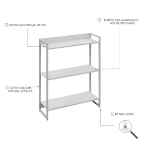 Sobre o ProdutoEstante Dynamica 80X30X104cm C/03 Prateleiras Carvalho / Est.BrancaDescrição do Produto:A Estante Dynamica DYES83 é um produto prático e versátil, que pode ser utilizado em diversos ambientes, como quarto e escritório, na sala, cozinha ou seu depó Linha Dynamica reúne design minimalista e praticidade, traços retos e móveis versáteis são as características dessa coleção. As estruturas metálicas possuem pintura Epóxi e sapatas niveladoras e, nos tampos, MDP BP Acetinado com fitas de borda em PVC. Itens Inclusos:1 EstanteDimensões dos Produtos:Estante Dynamica 80X30X104cm C/03 Prateleiras Carvalho / 80 x 30 x 104 cmInformações Logísticas (Comp. X Prof. X Alt.) 106 x 34 x 11 cm - Peso: 11,289 KgPeso Total: 11,289 KgObservações:Não acompanha acessórios decorativos. Imagens meramente ilustrativas.Informações Técnicas / Características:- Cor do Produto: Carvalho / - Marca: Compace- Modelo: DYES83- Linha: Dynamica- Material: Mdp- Material da Estrutura / Pés: Aço- Acabamento: BP Acetinado- Escala de Brilho: Fosco- Fita de Borda: Pvc- Possui Portas: Não - Possui Prateleiras: 3- Peso Máximo por Prateleira: 08 kg- Possui Pés: 2- Pés Niveladores: Sim - Acabamento Estrutura: Epóxi-Pó Texturizado - Suporta Até (kg): 24 kg- Comprimento: 80cm- Profundidade: 30cm- Altura: 104cm - Peso Lí.: 10,655Kg- Recomendações de Uso, Manutenção e Limpeza: Para a limpeza, utilize flanela seca ou pano macio levemente umedecido em água. Utilize um pano seco em seguida. Evite com produtos químicos (solventes, thinner, acetona, etc) e não utilize nenhum tipo de esponja de aço.- Necessita de Montagem: Sim / Acompanha Manual de Montagem- Complexidade da Montagem: Média: pode ser montado por mais de uma pessoa e/ou necessite de maior conhecimento para montagem.- Garantia: 6 meses Material: Mdp | Acabamento: BP Acetinado | Escala de Brilho: Fosco | Fita de Borda: Pvc | Material da Estrutura: Aço | Acabamento da Estrutura: Epóxi-Pó Texturizado | Produto: Estante | Cômodo indicado: Escritórios | Cor: Multicolorido | Tonalidade: Multicolorido | Quantidade de itens: 1 | Principais Características do Produto 0: Aço | do modelo: DYES83 | Certificação de teste externa: Não aplicável | Baterias são necessárias?: false | Palavras-chave de Pesquisa: Não Aplicável | Principais Características do Produto 1: MDP | da peça: DYES83 | de caixas: 1 | Principais Características do Produto 2: Pvc | Componentes incluídos: Manual de montagem e kit acessórios | Exige montagem: true | Fabricante: Compace | Peso do item: unit=kilograms; | Dimensões do item P x L x A: depth#value=30;width#value=80;depth#unit=centimeters;width#unit=centimeters;height#value=104;height#unit=centimeters Cor: Snow /