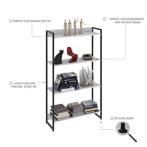 Estante Dynamica 80x30x146cm C/04 Prateleiras Branco Chess / Branco Chess / Sobre o ProdutoEstante Dynamica 80X30X146cm C/04 Prateleiras Branco Chess / Est.PretaDescrição do Produto:A Estante Dynamica DYES84 é um produto prático e versátil, que pode ser utilizado em diversos ambientes, como quarto e escritório, na sala, cozinha ou seu depó Linha Dynamica reúne design minimalista e praticidade, traços retos e móveis versáteis são as características dessa coleção. As estruturas metálicas possuem pintura Epóxi e sapatas niveladoras e, nos tampos, MDP BP Acetinado com fitas de borda em PVC. Itens Inclusos:1 EstanteDimensões dos Produtos:Estante Dynamica 80X30X146cm C/04 Prateleiras Branco Chess / 80 x 30 x 146 cmInformações Logísticas (Comp. X Prof. X Alt.) 155 x 31 x 10 cm - Peso: 14,429 KgPeso Total: 14,429 KgObservações:Não acompanha acessórios decorativos. Imagens meramente ilustrativas.Informações Técnicas / Características:- Cor do Produto: Branco Chess / - Marca: Compace- Modelo: DYES84- Linha: Dynamica- Material: Mdp- Material da Estrutura / Pés: Aço- Acabamento: BP Acetinado- Escala de Brilho: Fosco- Fita de Borda: Pvc- Possui Portas: Não - Possui Prateleiras: 4- Peso Máximo por Prateleira: 08 kg- Possui Pés: 2- Pés Niveladores: Sim - Acabamento Estrutura: Epóxi-Pó Texturizado - Suporta Até (kg): 32 kg- Comprimento: 80cm- Profundidade: 30cm- Altura: 146cm - Peso Lí.: 13,775Kg- Recomendações de Uso, Manutenção e Limpeza: Para a limpeza, utilize flanela seca ou pano macio levemente umedecido em água. Utilize um pano seco em seguida. Evite com produtos químicos (solventes, thinner, acetona, etc) e não utilize nenhum tipo de esponja de aço.- Necessita de Montagem: Sim / Acompanha Manual de Montagem- Complexidade da Montagem: Média: pode ser montado por mais de uma pessoa e/ou necessite de maior conhecimento para montagem.- Garantia: 6 meses Material: Mdp | Acabamento: BP Acetinado | Escala de Brilho: Fosco | Fita de Borda: Pvc | Material da Estrutura: Aço | Acabamento da Estrutura: Epóxi-Pó Texturizado | Numero do Fabricante: | Tipo de Produto: Estante | Fabricante: Compace | Produto: Estante | Cômodo indicado: Escritórios | Cor: Multicolorido | Tonalidade: Multicolorido | Profundidade: 30 | Altura: 146 | Comprimento: 80 | Coleção: Industrial | Requer Baterias: Não | Certificação Externa: | Componentes inclusos: Manual de montagem e kit acessórios | Preço de tabela: 256.89999999999998 | Compace: do Modelo | 1: da Peça | DYES84: Cor: Branco Chess /