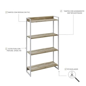 Estante Dynamica 80x30x146cm C/04 Prateleiras Carvalho / Carvalho / Sobre o ProdutoEstante Dynamica 80X30X146cm C/04 Prateleiras Carvalho / Est.BrancaDescrição do Produto:A Estante Dynamica DYES84 é um produto prático e versátil, que pode ser utilizado em diversos ambientes, como quarto e escritório, na sala, cozinha ou seu depó Linha Dynamica reúne design minimalista e praticidade, traços retos e móveis versáteis são as características dessa coleção. As estruturas metálicas possuem pintura Epóxi e sapatas niveladoras e, nos tampos, MDP BP Acetinado com fitas de borda em PVC. Itens Inclusos:1 EstanteDimensões dos Produtos:Estante Dynamica 80X30X146cm C/04 Prateleiras Carvalho / 80 x 30 x 146 cmInformações Logísticas (Comp. X Prof. X Alt.) 155 x 31 x 10 cm - Peso: 14,429 KgPeso Total: 14,429 KgObservações:Não acompanha acessórios decorativos. Imagens meramente ilustrativas.Informações Técnicas / Características:- Cor do Produto: Carvalho / - Marca: Compace- Modelo: DYES84- Linha: Dynamica- Material: Mdp- Material da Estrutura / Pés: Aço- Acabamento: BP Acetinado- Escala de Brilho: Fosco- Fita de Borda: Pvc- Possui Portas: Não - Possui Prateleiras: 4- Peso Máximo por Prateleira: 08 kg- Possui Pés: 2- Pés Niveladores: Sim - Acabamento Estrutura: Epóxi-Pó Texturizado - Suporta Até (kg): 32 kg- Comprimento: 80cm- Profundidade: 30cm- Altura: 146cm - Peso Lí.: 13,775Kg- Recomendações de Uso, Manutenção e Limpeza: Para a limpeza, utilize flanela seca ou pano macio levemente umedecido em água. Utilize um pano seco em seguida. Evite com produtos químicos (solventes, thinner, acetona, etc) e não utilize nenhum tipo de esponja de aço.- Necessita de Montagem: Sim / Acompanha Manual de Montagem- Complexidade da Montagem: Média: pode ser montado por mais de uma pessoa e/ou necessite de maior conhecimento para montagem.- Garantia: 6 meses Material: Mdp | Acabamento: BP Acetinado | Escala de Brilho: Fosco | Fita de Borda: Pvc | Material da Estrutura: Aço | Acabamento da Estrutura: Epóxi-Pó Texturizado | Produto: Estante | Cômodo indicado: Escritórios | Cor: Multicolorido | Tonalidade: Multicolorido | Fabricante: Compace | Numero do Fabricante: | Profundidade: 30 | Altura: 146 | Comprimento: 80 | Coleção: Industrial | Requer Baterias: Não | Certificação Externa: | Componentes inclusos: Manual de montagem e kit acessórios | Preço de tabela: | Compace: do Modelo | 1: da Peça | DYES84: Cor: Carvalho /