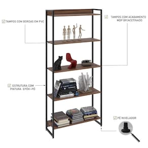 Estante Dynamica 80x30x187cm C/05 Prateleiras Nogal / Nogal / Sobre o ProdutoEstante Dynamica 80X30X187cm C/05 Prateleiras Branco Chess / Est.PretaDescrição do Produto:A Estante Dynamica DYES85 é um produto prático e versátil, que pode ser utilizado em diversos ambientes, como quarto e escritório, na sala, cozinha ou seu depó Linha Dynamica reúne design minimalista e praticidade, traços retos e móveis versáteis são as características dessa coleção. As estruturas metálicas possuem pintura Epóxi e sapatas niveladoras e, nos tampos, MDP BP Acetinado com fitas de borda em PVC. Itens Inclusos:1 EstanteDimensões dos Produtos:Estante Dynamica 80X30X187cm C/05 Prateleiras Branco Chess / 80 x 30 x 187 cmInformações Logísticas (Comp. X Prof. X Alt.) 187 x 31 x 10 cm - Peso: 17,756 KgPeso Total: 17,756 KgObservações:Não acompanha acessórios decorativos. Imagens meramente ilustrativas.Informações Técnicas / Características:- Cor do Produto: Branco Chess / - Marca: Compace- Modelo: DYES85- Linha: Dynamica- Material: Mdp- Material da Estrutura / Pés: Aço- Acabamento: BP Acetinado- Escala de Brilho: Fosco- Fita de Borda: Pvc- Possui Portas: Não - Possui Prateleiras: 5- Peso Máximo por Prateleira: 08 kg- Possui Pés: 2- Pés Niveladores: Sim - Acabamento Estrutura: Epóxi-Pó Texturizado - Suporta Até (kg): 40 kg- Comprimento: 80cm- Profundidade: 30cm- Altura: 187cm - Peso Lí.: 16,88Kg- Recomendações de Uso, Manutenção e Limpeza: Para a limpeza, utilize flanela seca ou pano macio levemente umedecido em água. Utilize um pano seco em seguida. Evite com produtos químicos (solventes, thinner, acetona, etc) e não utilize nenhum tipo de esponja de aço.- Necessita de Montagem: Sim / Acompanha Manual de Montagem- Complexidade da Montagem: Média: pode ser montado por mais de uma pessoa e/ou necessite de maior conhecimento para montagem.- Garantia: 6 meses Material: Mdp | Acabamento: BP Acetinado | Escala de Brilho: Fosco | Fita de Borda: Pvc | Material da Estrutura: Aço | Acabamento da Estrutura: Epóxi-Pó Texturizado | Numero do Fabricante: | Tipo de Produto: Estante | Produto: Estante | Cômodo indicado: Escritórios | Cor: Multicolorido | Tonalidade: Multicolorido | Quantidade de itens: 1 | Principais Características do Produto 0: Aço | do modelo: DYES85 | Certificação de teste externa: Não aplicável | Baterias são necessárias?: false | Palavras-chave de Pesquisa: Não Aplicável | Principais Características do Produto 1: MDP | da peça: DYES85 | de caixas: 1 | Principais Características do Produto 2: Pvc | Componentes incluídos: Manual de montagem e kit acessórios | Exige montagem: true | Fabricante: Compace | Peso do item: unit=kilograms; | Dimensões do item P x L x A: depth#value=30;width#value=80;depth#unit=centimeters;width#unit=centimeters;height#value=187;height#unit=centimeters Cor: Nogal /