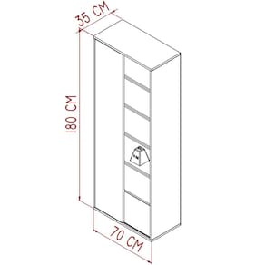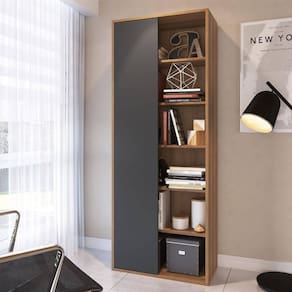 Garantia: 90 dias / Peso: 37,8kgs / Cor: grafite e mel/ Referência: 7898270100086; Dimensões: 70cm (C) x 35cm (L) x 180cm (A); Material: MDP e FF fosco; Conteúdo da embalagem: móvel, ferragens e manual de montagem.