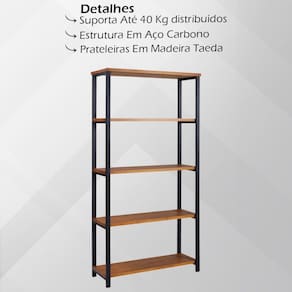 Estante Estilo Industrial Aço Preto I12 Madeira Taeda. Você está procurando uma estante que combine beleza, resistência e funcionalidade? Então você vai adorar a Estante com 5 Prateleiras em Madeira Taeda e Estrutura em Aço Carbono Preto, com pintura em acabamento Epóxi (Fosco). Composta por 5 Prateleiras em Madeira Taeda. Ela é ideal para organizar e decorar diversos ambientes, como sala, escritório, quarto ou cozinha Suporta até 40 Kg Distribuidos. Este móvel chegará na sua casa separado em 02 volumes.