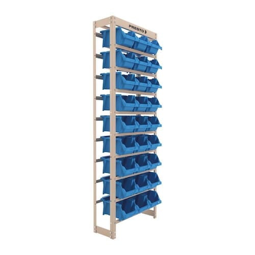 Kit Estante Gaveteiro Organizador 27/5 Azul em aço para encaixar gavetas plásticas, possibilitando diversos tipos de armazenagem. O Kit Estante Gaveteiro é ideal para organizar parafusos e outras peças pequenas, pois facilita o acesso rápido a itens necessários para realizar o trabalho de maneira mais ágil e organizada. Estrutura em aço e 27 Gavetas Empilháveis n 5 inclusas.