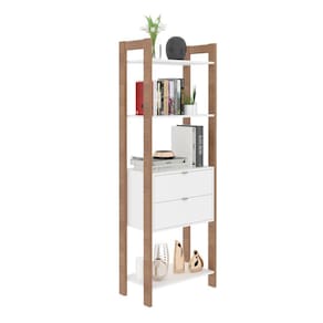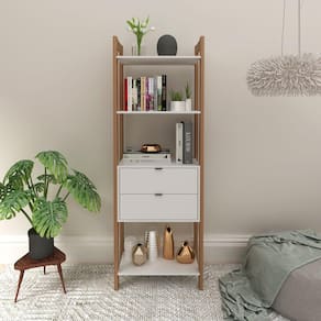 Estante Haia. Estrutura em MDP e acabamento em pintura UV e parte em BP. Imagem meramente ilustrativa. A decoração do ambiente não acompanha o produto, produto entregue desmontado, novo, acompanha nota e manual de montagem e ferragem. Acabamento da Gaveta: Pintura UV Acabamento da Prateleira: Pintura UV Ambiente Principal: Sala de Estar Complexidade da Montagem: Média: pode ser montado por mais de uma pessoa e/ou necessite de maior conhecimento para montagem Cor: Amêndoa/Branco Cor do Produto: Amêndoa/Branco Cor Flex: Amêndoa/Branco Cor Interna: Amêndoa/Branco Escala de Brilho: Semi-Brilho Escala de Brilho da Gaveta: Semi-Brilho Escala de Brilho da Prateleira: Semi-Brilho Gaveta com Chave: Não Itens Inclusos: Kit Ferragem e Manual de Montagem. Linha ou Coleção: AZ Manual de Montagem e Instalação: https://cdn2.madeiramadeira.com.br/atributo/tecno-mobili/1274018-az-2020.pdf Material da Gaveta: MDP Material da Prateleira: MDP Material do Puxador da Gaveta: Alumínio Material Principal: MDP Necessita Montagem: Sim Origem do Produto: Nacional Peso: 27,5 kg Peso Máximo por Gaveta: 3 kg Peso Máximo por Prateleira: 5 kg Possui Espelho: Não Possui Possui iluminação: Não Possui Pés: Não Possui Portas: Não Possui Prateleiras: 04 Possui Vidro: Não Recomendações de Uso, Manutenção e Limpeza: Para uma limpeza mais efetiva, utilizar apenas pano macio umedecido e sabão neutro. Não utilizar produtos abrasivos. Sistema de Montagem: Parafuso Suporta Até (kg): 30 kg Tipo de Corrediça da Gaveta: Metálica Simples Tipo de Puxador da Gaveta: Externo