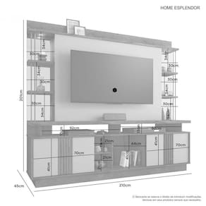 Robustez e sofisticacao sao as principais caracteristicas do Home Esplendor. Possui portas de correr com detalhe ripado, luminarias em LED, espelhos decorativos e tubos metalicos, opcionais ideais para deixar sua sala de estar ainda mais bela e aconchegante.