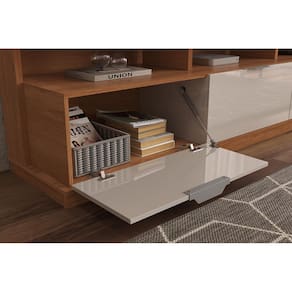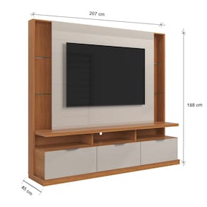 Estante Home Bilbao para TV até 70 Polegadas 3 Portas Prateleiras Vidro e Rodízio Jequitibá/Off White - Lukaliam