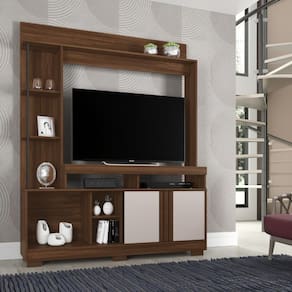 A Estante Marbella é ideal para deixar sua sala mais organizada e elegante. Com design moderno, possui porta de correr com detalhe ripado, tubo metálico decorativo e diversos nichos para acomodar eletrônicos e objetos decorativos. Conta também com 2 prateleiras e pés em PVC, garantindo praticidade e estabilidade. Indicada para TVs de até 49 polegadas.