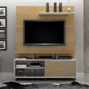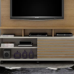 A Estante Home Star Valdemóveis vai deixar a sala mais charmosa e elegante para sua familia e visitas. Ela é ideal para TVs de até 60 polegadas. Este home estante possui porta deslizante em trilho de alumínio que facilita a abertura para guardar objetos e realizar a limpeza do móvel. A estante que é rack com painel, possui nichos que são perfeitos para melhor organização dos aparelhos eletrônicos. Sua prateleira superior é de madeira MDF de 25 mm, que possui alta resistência, além de ser ótima pra colocar seus itens de decoração. A estante home para tv tem sua estrutura em MDP, capaz de prolongar a vida útil da peça e deixar seu ambiente mais sofisticado. A pintura com acabamento U.V. é mais uma característica de grande estilo dessa estante home, que vem acompanhada de suporte para sua TV, facilitando ainda mais a instalação do seu produto. A estante para sala de tv possui ainda pés com rodízios que auxiliam na movimentação para limpeza do ambiente. Tenha uma sala dos seus sonhos com a Estante para tv Home Star Valdemóveis. Cor: Cinamomo e Off White