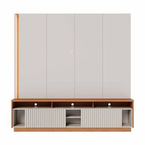 As portas deslizantes com acabamento ripado artesanal adicionam um toque de requinte, enquanto o tampo superior de 25mm oferece resistência e durabilidade para o dia a dia. Produzido em MDP e MDF com acabamento em pintura UV, unindo beleza e praticidade em um único produto. Ideal para TVs de até 75 polegadas.