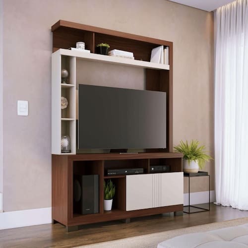PESO TOTAL SUPORTADO(KG): 20 | MARCA: CASAH | QUANTIDADE DE PORTAS: 2 | TIPO DE PORTA: GIRO | IDEAL PARA TVS DE ATE(POLEGADAS): 50 | QUANTIDADE DE PES: 6 | QUANTIDADE DE NICHOS: 9 | QUANTIDADE DE PRATELEIRAS: 2 | ALTURA DO PRODUTO COM EMBALAGEM (CM): 14 | ALTURA DO PRODUTO (CM): 190 | LARGURA DO PRODUTO COM EMBALAGEM (CM): 42 | PESO DO PRODUTO COM EMBALAGEM (KG): 43 | QUANTIDADE DE GAVETAS: 0 | COR PREDOMINANTE: NOGUEIRA REAL OFF WHITE MATTE | QUANTIDADE DE CAIXAS NA EMBALAGEM: 1 | GARANTIA DO FABRICANTE: 3 | MATERIAL PRINCIPAL: MDP MDF | ESTADO DE ORIGEM: SP | CORES DO PRODUTO (FILTRO DE CORES): NOGUEIRA REAL | COMPRIMENTO DO PRODUTO COM EMBALAGEM (CM): 143 | PRODUTO PRECISA DE MONTAGEM?: Sim, a montagem e facil mas sugerimos a contratacao de um montador para a montagem do produto. Nao nos responsabilizamos por danos causados no ato da montagem. | PESO DO PRODUTO (KG): 43 | COMPRIMENTO DO PRODUTO (CM): 38 | PRODUTO: ESTANTE | LARGURA DO PRODUTO (CM): 136 | DESCRICAO DO TAMANHO: 190X136X38 | INSTRUCOES/CUIDADOS: Limpar com pano macio e seco, nao utilizar produtos abrasivos.