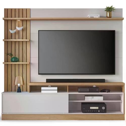 Estante Home Maceio, combina tanto com ambientes modernos e minimalistas quanto os clássicos. Um móvel para quem deseja ter um verdadeiro cinema em casa e deixar sua sala de estar ainda mais elegante. Estrutura em MDP de 15 e 25 mm, que proporcionam melhor acabamento nas bordas e superfícies, contando com pintura em acabamento UV (Fosco). Composta por porta basculante com o sistema de pistão a gás que garante suavidade em sua abertura, dobradiças metálicas, detalhes ripados iluminados por luz de LED (bivolt) em seu painel, nichos com espaços para acomodar aparelhos eletrônicos e objetos decorativos, prateleiras, passa fios e acompanham sapatas plásticas. É ideal para TVs de até 65 polegadas no painel. Este móvel chegará na sua casa separado em 03 volumes.