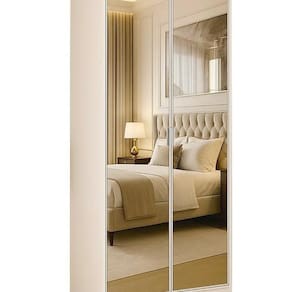 Ao lado, o Armário Magia completa o visual com suas 2 portas com espelhos inteiriços que ampliam o espaço e refletem luminosidade. Internamente, oferece prateleiras ideais para organizar livros, itens decorativos ou objetos pessoais. Compacto e funcional: 182cm de altura, 57cm de largura e 32cm de profundidade.